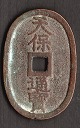 天保6年(1835年)から鋳造を始めた楕円形の銅貨。コレクターに人気が高いが昔から贋作品も多い。 |